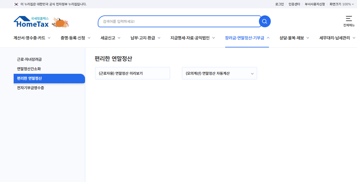 ② 상단 메뉴 → 장려금·연말정산·기부금